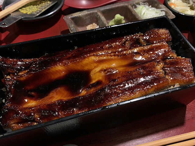 今日は先週のメニューに加え、絶品のあなご白焼き。確かにうなぎに比べるとあなごは脂分がすくないのでかなり淡白な感じ。そのため、あなごは焼くと結構固めになってしまうのでやはり蒸しがいいみたいです。フィニッシュの箱めしは焼き、と蒸しの両方が楽しめます。