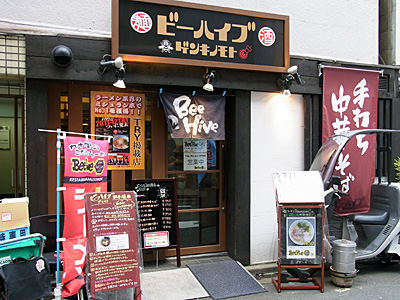 閑話休題。お店の隣はニャゴヤ料理のごはち亭。こちらは赤ヘル、あちらはドアラです(笑)。それじゃ僕はタフマンやミルミル持って突撃しましょうかね。で、のれんをくぐったらそこは広島でした(笑)。あっちの店ってこんな感じです。「いらっしゃいませー!」が無いよなぁ。なおかつ、噂通り鉄板の向こう側では「弱めの」口論が展開していて、緊張感みなぎる感じも広島風。オーダーも聞かれなかったので「そば入り、ネギかけ!」と誰とはなく声をかけます。うーん、客が注文してんだから返事くらいしろよな~。