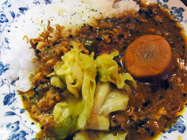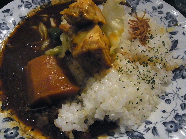 3回めの突撃。今日はインド風です。これ、キーマに勝るとも劣らぬ辛さ。そしてかなりスパイシー。薬膳ぽい感じもします。神保町のエチオピアに似てますが、あそこまで極端じゃない。うーん、美味い。でっかい人参が何故かとても美味いんですな。今のところ、インド風が一番好みかも。また来ますよ。[2012.11]