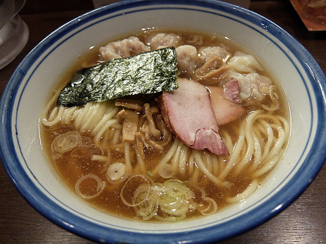 たんたん亭系ならば絶対にワンタンは外せない。ここは塩ラーメンもあって凄く気になったのですが、まずは定番の醤油ワンタン麺。注文を通すと「900円です」と言われる。おお、前金制ですか、珍しい。確かに券売機が無いのでこのほうが効率が良い。店主が動き始める。麺とワンタンの茹で時間は違うので、混雑時の取り回しは大変だろうと思う。そしていよいよ着丼。あー、いいビジュアルです。まずレンゲでスープをいただくと軽くやけど。なかなかオイリーだからスープが熱いんだ、いいね。にぼしが効いたスープは思った通りの端麗系。ただしこれ以上にぼし入れたら、エグミや苦みが出てぶちこわしだと思う。これだよね、これ。そして、絶対大やけどだろうなと(笑)警戒しつつ慎重に、まずはワンタン。生姜がばっちり効いてて美味いわ、あーはほはほ。端麗スープに濃いめの味付けのワンタン。このコラボがいい。