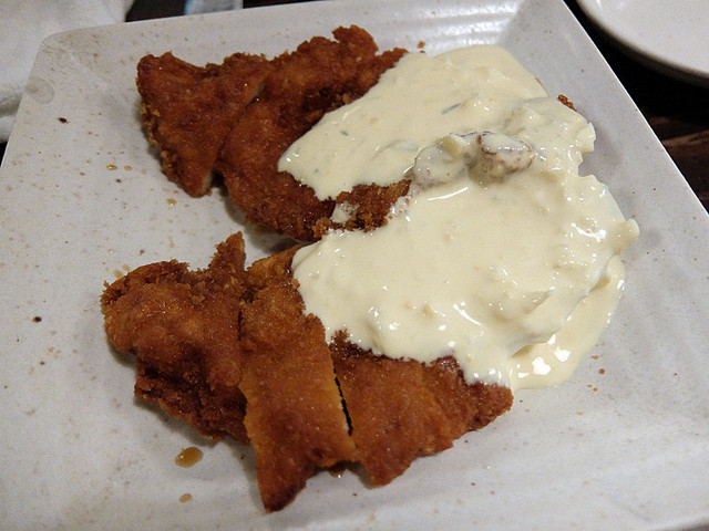 「地鶏は味が濃くて柔らかい」という勘違いしてる人も多いけど、地鶏ってブロイラーなんかと違ってめちゃめちゃ運動してるので肉が堅〜いんですよ。ここは大阪に本社があるチェーン店ですが薩摩郷土料理の店のようです。薩摩郷土料理の「もも焼き」は堅いですが、噛んでるうちにどんどん味が出てきます。旨味はブロイラーとは比べ物にならない感じ。チキン南蛮も味濃い。そして最近はスーパーでも見かけるようになった「せせり(首肉)」も地鶏だと旨味が違う。種類こそ少ないが薩摩や大分の焼酎も揃っていて、しかも安い。がっつり呑んでひとり3,000円ちょい。かなり満足。また、隣町からバスに乗って呑みに来ますね。