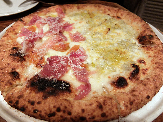 今日は年末の細々としたものを買いに渋谷へ。途中でジョシ1名と合流して、気になっていたピッツェリアへ。2階にテープル席がひとつだけ、あとはカウンターだけの小さな店でした。インテリアはモダン。イケメン君ふたりがピッツアを焼いてます。ふたりともカープの菊池選手みたいなヒゲ生やしてて面白い。絶妙な接客が心地よいです。