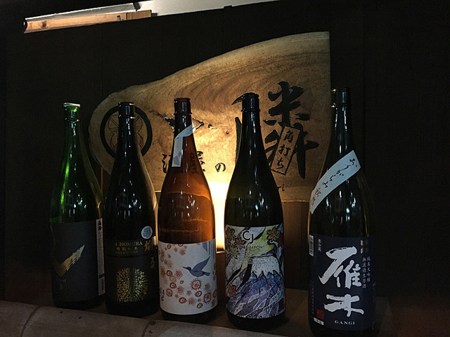 店の入口、なに?ここ?普通の居酒屋じゃない?店内古材と漆喰でできていて、間接照明だし、なにこれオシャレじゃん。でも隣はホントに酒屋だそうで、短冊には結構マニアックな酒が並ぶ。あ、埼玉・蓮田の酒「神亀」がありますなぁ。お酒は400円前後で安いじゃんと思ったら、これが小さめの湯呑み一杯。これは一合ありませんな。つーことは一合だと900円くらいか。燗酒を頼むとアルミのタンポから直で注いでくれる。で、お代はキャッシュ・アンド・デリバリー。アイリッシュバーと同じだ。連れて来てくれたスタッフは、この店に来るときはカウンターに2,000円置いて、その分を飲みきったら大栄橋の「おねーちゃんのいる店」に行くらしい。