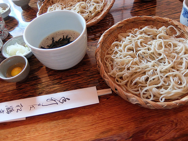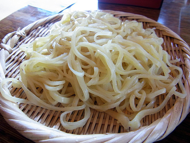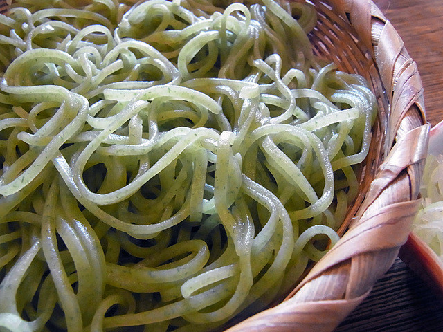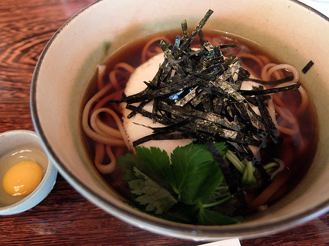 クルマを手放してというもの、ここのお店に行くのがかなり大変になってしまいました。志木の駅から歩くと20分以上かかりますので、ほとんど遠足になります。というわけでいつもレンタカーを乗り付けることになるわけで。それでもここの蕎麦は一年に一回は絶対食べたい。僕の中ではここをしのぐ蕎麦屋は無いのですから。ということで今日のかわりそばはしそ切りです。冬はゆず切り、そして春は桜と季節を楽しむことができます。そしてここのなんとも素晴らしいのは辛めのつゆ。しあわせ。[2012.6]