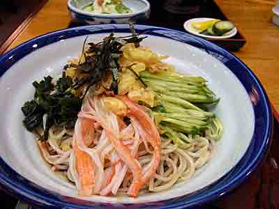 関東は今週から本格的な暑さ。カミさんとひさびさに代々木屋でランチです。いつももりか冷やしたぬきを食べるんですが、今日は何か違うものを行こうと。ここのメニュー全制覇しているカミさんに冷たいそばのお勧めを聞くと、サラダそばだそうです。こちらの若女将のイチオシでもあるらしい。じゃ、それを大盛りで行きましょ。カミさんは珍しく天丼。
