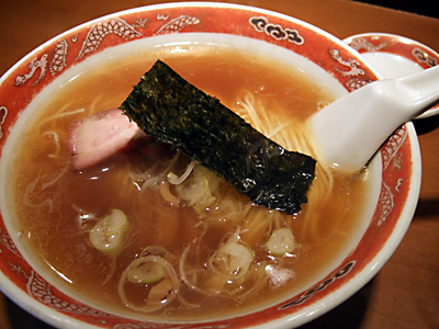 知りませんでした。そして浜田山「たんたん亭」系なのですね。初めての店は定番で行くのが僕のやり方なんですが、ここではわんたん麺、行ってみました。スープが噂に違わぬ鶏ガラの超あっさり系で、わずかにイリコが香るもの。このわずかに香る、くらいが一番美味いんですよ。無闇にイリコ投入してスープに苦みが出てしまう「思いこみ系」ラーメンが多い中、ここのはちゃんといいところで止めてます。ちょっと薄いかな?と思うくらいの上品なスープは全く飽きがきません。麺は細めの多加水麺でもっちりしてます。わんたんはわずかに生姜が効いていてこれもさっぱり。うーん、素晴らしいです満足の一杯。「たんたん亭」系だと、駒場東大前の「嚆矢」も美味いので、これはいよいよ浜田山へ行かなくちゃいけないのかな?と思い始めてきました。[2011.11]
