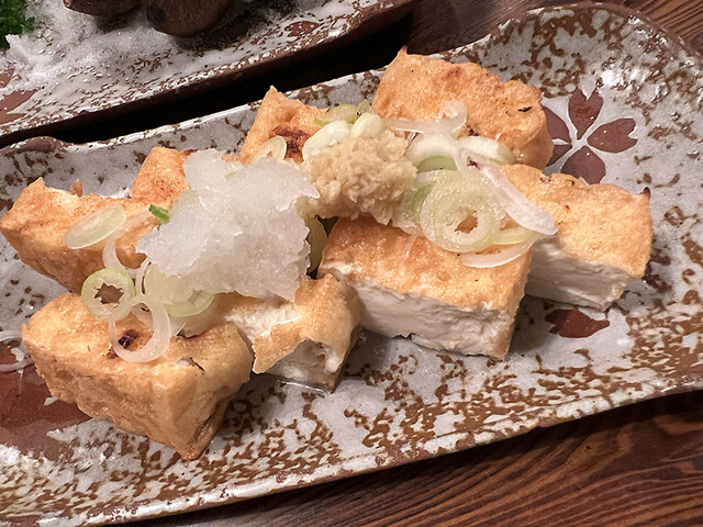 ここの厚揚げは自家製の作り立て。豆腐が大好きなので気に入ってるんだよね。そういえばボトルまだ残ってたっけ?ああ、まだ8分くらい残ってるラッキー。焼酎の水割りにスイッチ。そのうちに近所の常連さん達が集まってきて、久しぶりのごあいさつ。