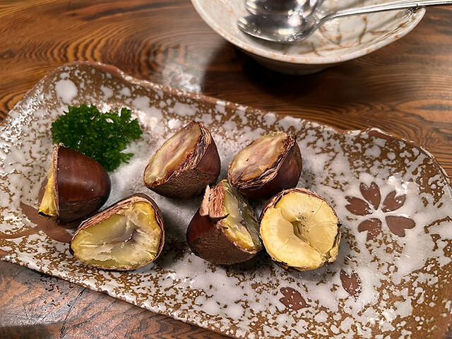 小さいビールで乾杯して鯵刺し。すぐコップ冷酒にスイッチしてあーしあわせである。栗がある、というので焼いてもらってスプーンでほじくって食べる。子どものころはよくこうやって食べたなぁ。昔はそのまま食べたけど塩をパラパラやって食うと甘辛で美味い。日本酒に合う。