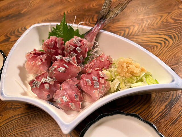 ホタルイカ、かんぱち、鯵の刺し盛り