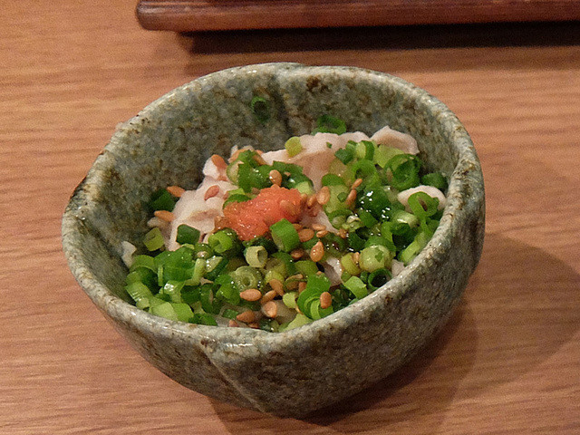 で、みなさん元気そうでした。よかったよかった。で、5年ぶりの新メニュー、低温調理のレバ刺しをいただいてみてびっくりですわ。トロけるような滑らかさでめっちゃ美味い。臭みなし。普通はにんにくとかでいただくんですが、僕は生姜で食べるのが最高でした。これはね、次回からはマストですな。これで延々呑めるわ。