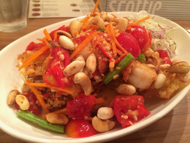 ソムタム特有の酸っぱ辛さと揚げた衣の食感が絶妙で、感動すること請け合い。