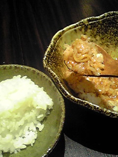 やはり予想通り、汁が多めに残ったので、半ライスを頼んだら、