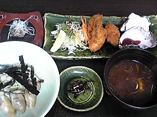 牡蠣屋定食\2000(牡蠣オイル漬け、牡蠣フライ、牡蠣めし、牡蠣入赤だし)