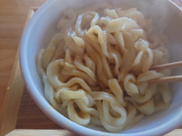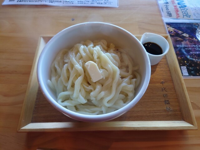 今日の昼飯。細君とドライブで館林の隠れた名店UDONBIRTRO千代田饂飩さんでとりました。注文は、細君が、釜バター饂飩、私はみそめんバター、館林プリンを2個、千代田だし巻き玉子をシェアしました。だし巻き玉子が先に来たので、実食。ふんわりとした食感と表面の焼き具合、出汁が浸みた味。形は不格好でもとても美味しゅうございます。さて、みそめんバターが来ましたので、バターを溶かしながらかき混ぜて実食。相変わらずな独特な食感、ふわっとした柔らかさの中に腰がある独自の食感。ほんのり香味噌の風味とバターのコクが味の広がりを感じます。シンプルながら、奥行きのある優れた逸品ですね。で、館林プリンも今流行の柔らかめのプリンではなく、しっかりした固めの伝統的なプリン。保守本流な美味しいプリンでした。あんまり知られたくない隠れた名店です。ごちそうさまでした。