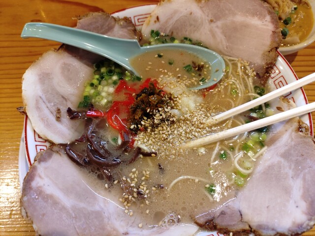今夜の夕食。久しぶり館林の博多屋台でラーメン。注文は、群馬名物もつ煮に、博多チャーシューラーメン。では、もつ煮から実食。う~ん、相変わらずクリーミーで美味しい、お味。これが上州のお袋の味?では、バリカタで注文した拉麺もいただこう。これまた相変わらず、クリーミーは出汁に博多ラーメンのバリカタがベストマッチ。美味しゅうございました。ごちそうさまでした。