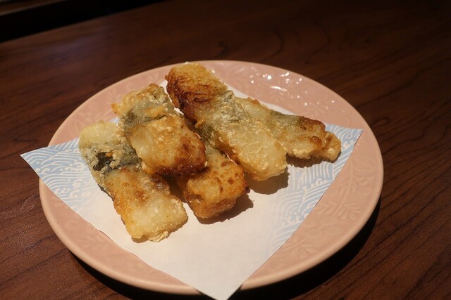”長芋梅しそ巻き”はフリッターっぽいザクっと衣の2口サイズが5本。