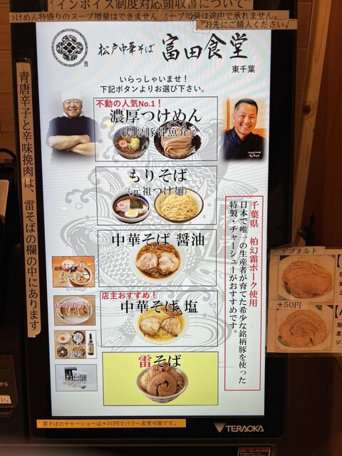 富田食堂が知らぬ間に新たなエリアにできてたので行ってみることに。ここは王道の濃厚つけ麺だけでなく、もりそばや雷そばも食べられるのが凄い。