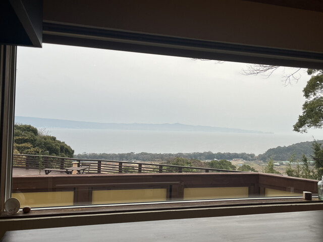 大きな窓からは橘湾、その向こうには小浜温泉や雲仙まで見渡せます。