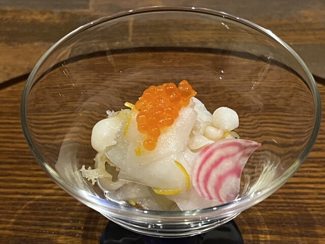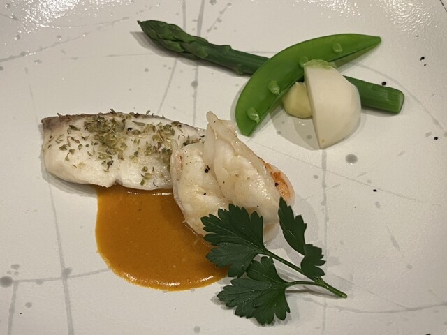 真鯛のフリット新玉葱とトマトのソース ケッパーのバターソテー添え