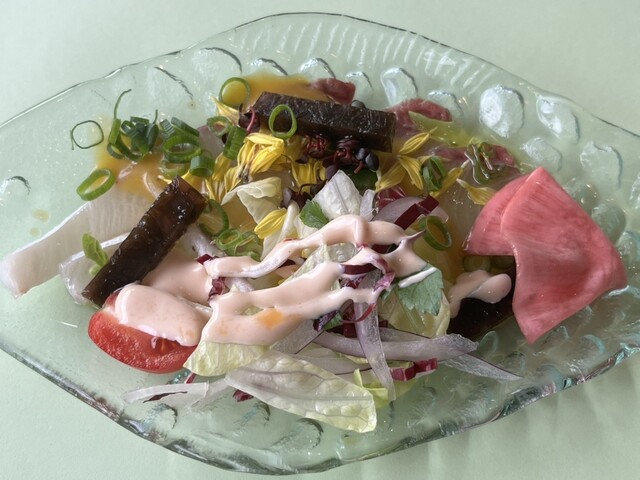 オードブルは毎回少しずつ内容が違っていて、この日はシマアジのカマのローストが初登場♫