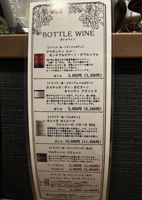 ドリンクメニュー