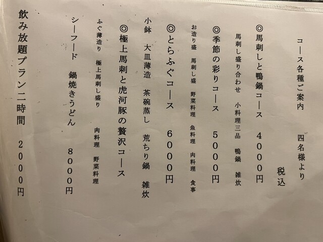 馬肉料理メニュー