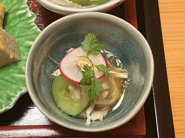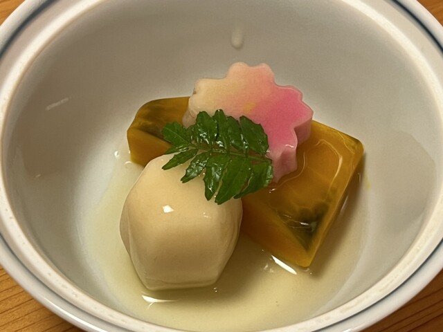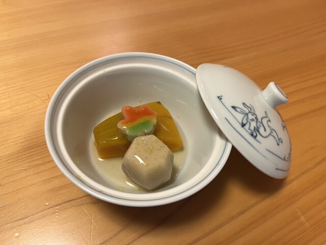 15分ほどで配膳、少し遅れて炊き合わせの入った器がやってきました。