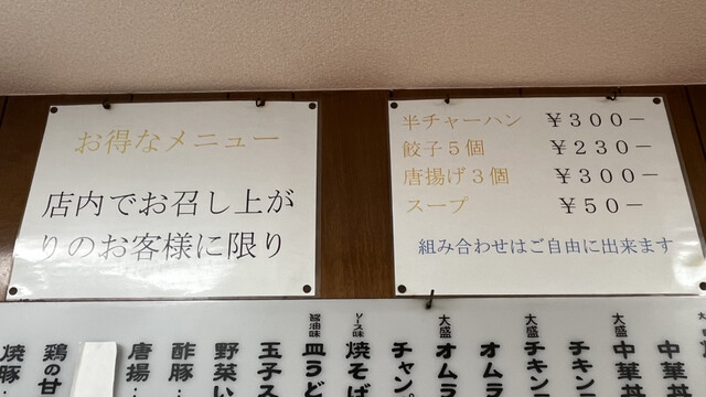 次回はノーマルサイズの焼き飯と、唐揚げ&スープのサービスメニューのセットにしてみよう(笑)。