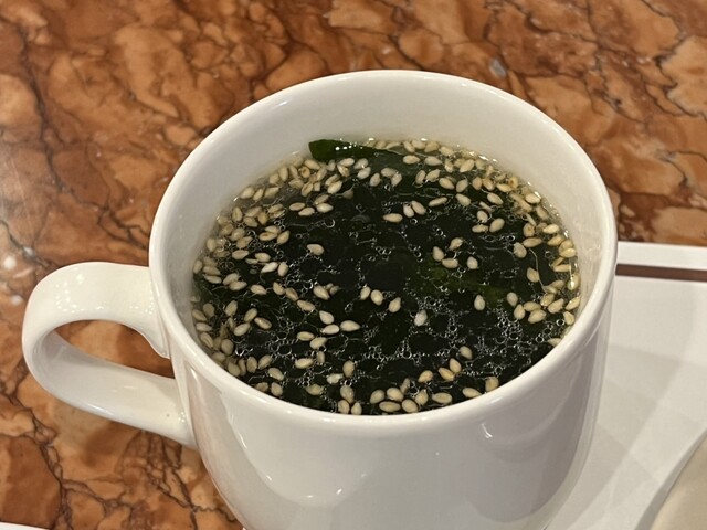 アサリとワカメのスープは、小さめですがアサリがたっぷり入っていました。