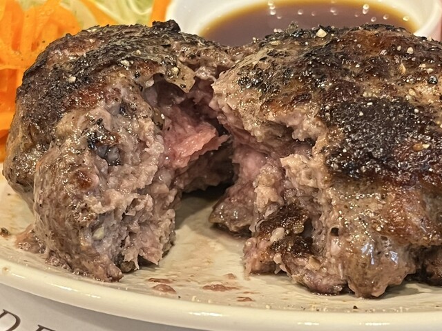 味わいはステーキ食べてるみたいで、これぞ本物のハンバーグステーキだ!って大きな声で言いたい(笑)!