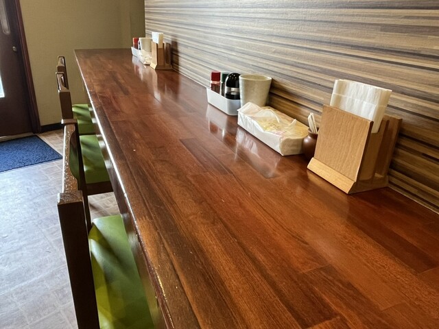 建物裏手のお昼のみ駐車可能なNO.53に車を停めて11時25分に入店すると、入り口直ぐのカウンターに先客1名の板櫃ワーカー。