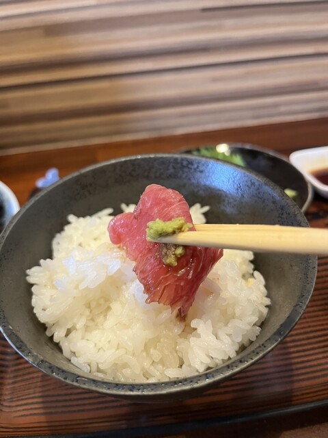 部位は肩ロースで驚くほど柔らかく、少し多めの脂身は甘くとろける美味しさ。