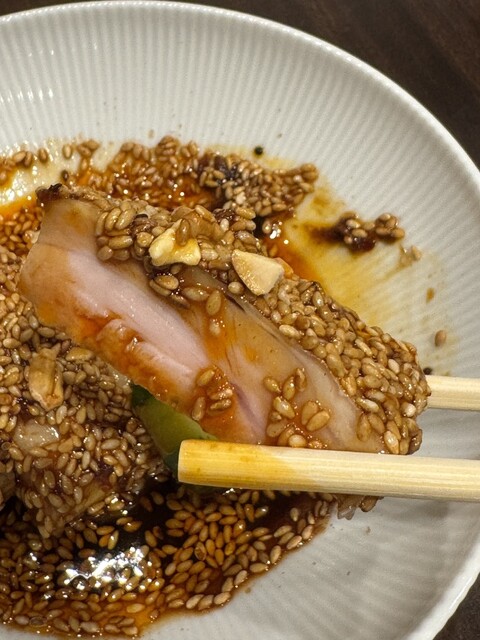 全体的に各料理とも非常に優れていました。よだれ鶏の硬さもちょうど良く、辛味ソースとゴマが味付けをさらに引き立てています。チャーシューライスは期待以上に美味しく、特にソースがフランス風の調理法と組み合わさっていて、とても香り高かったです。チャーシューも非常に柔らかく、もう一杯食べたくなるほどでした。