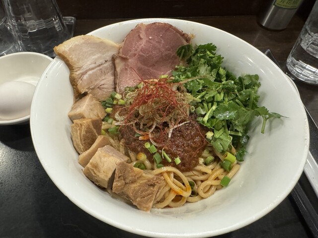不過我也是滿機車的,在人家要結束午休營業時間的前五分鐘跑進去。點了一碗經典的特製麻婆まぜそば,價格在 1600。好在可以使用 PayPay,不需要現金。不然一般的拉麵店都需要使用現金。