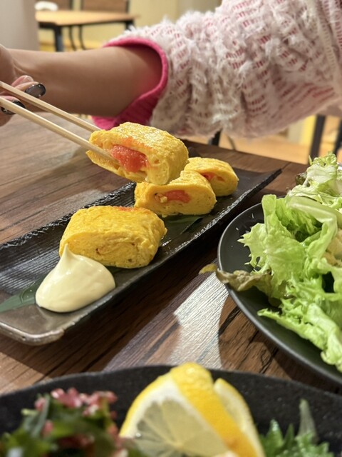 明太だしまき卵は、ふわっとジューシーな出汁巻きに、明太子がしっかり詰まっていて、甘じょっぱいバランスが絶妙。添えられたマヨネーズとの相性もばっちりで、つい追加オーダーしたくなる味です。