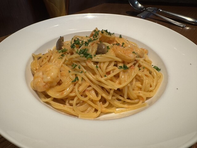 エビとしめじのトマトクリーム