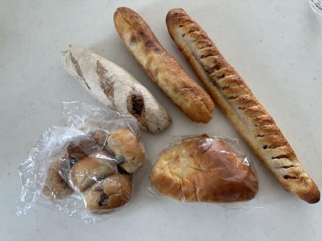 他にはコーンロール、バナナパウンドケーキ、シナモンロール、クリームパン、フランボワーズバター。
