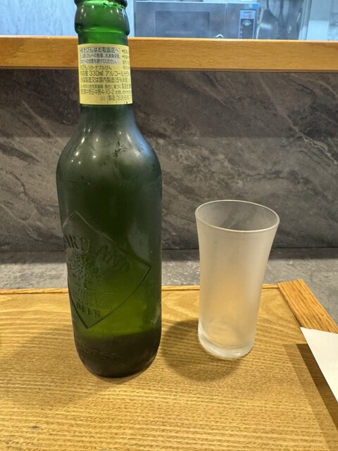 ラーメンが出来上がるまで、ビールで至福の時間を