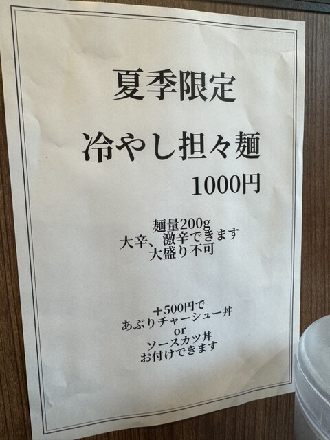 着席してふと横を見ると、冷やし担々麺のポスターが貼ってあるではないですか!
