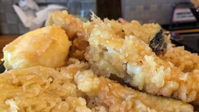 れんこん、キス、えび天、ナス、卵天が入ってます。