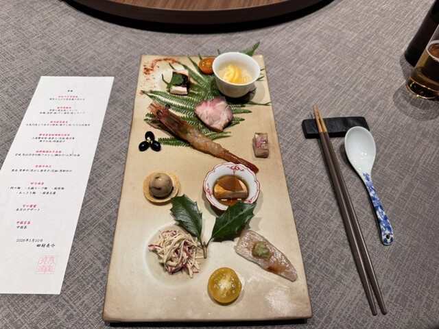 運気の上がる前菜盛り合わせは、一品毎に丁寧に味付けされ、最初から唸らされました。運気を上げるために下から食べるのですが、昇り龍の代わりに、エビが調理されており、頭から頂くとえびの味噌も味わえて非常に美味でした。