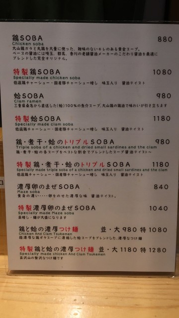 特製鶏SOBA か 特製蛤SOBA が正解メニューに思える。
