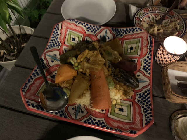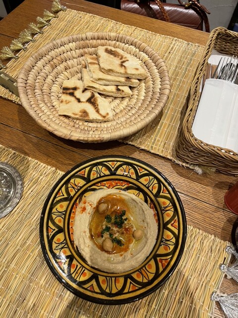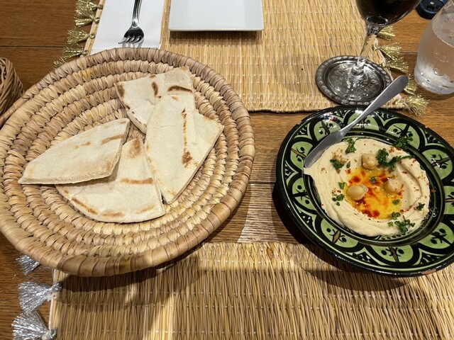 日本で比較的ポピュラーなトルコ料理や、アメリカやヨーロッパで一般的なレバノン料理などとの共通点も多いものの、フランスの影響を受けてかワインなども充実。日本ではレアなチュニジアやモロッコのワイン、ビールも置いている。店の雰囲気もよく、いろんなシーンで利用できる大阪ではトップ5に入るお気に入りの店。シェフはフランス語、アラビア語、日本語に堪能。おすすめはフムスとタジン鍋とシェフが実演で目の前で入れてくれるミントティー。
