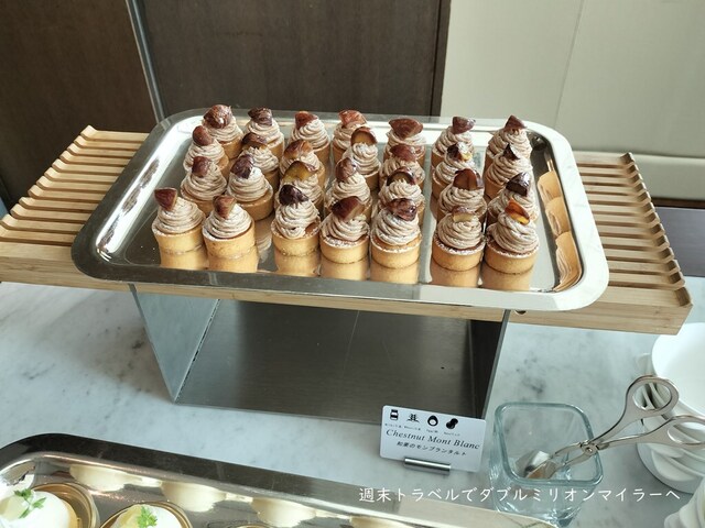 最後に気に入ったものをと、モンブランタルトをリピート。。ランチビュッフェには食後のカフェ2杯が含まれています。スイーツが美味しかったので、コーヒーをいただき、スイーツとともに楽しみました。