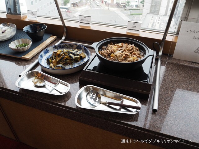妻は美味しそうと思ったものを少しずつ。昨年いただいて美味しかったハンバーグ、そして、美味しそうな部位を使った牛すき煮、鯖塩焼きなど。いずれも想像通りの美味しさで大満足。2皿目は野菜中心に。素材が本当によく、どれを選んでも美味しいのがうれしいところ。自宅ではここまで材料をそろえるのが難しいですし、何よりも一度にこれだけの種類を作ることはないので、ホテルの朝食ならではの楽しさ。