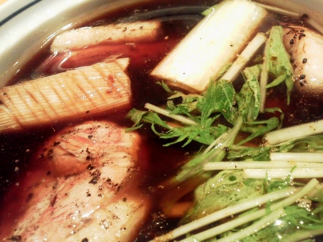 香ばしく炙った鴨。葱には丁寧に包丁が。