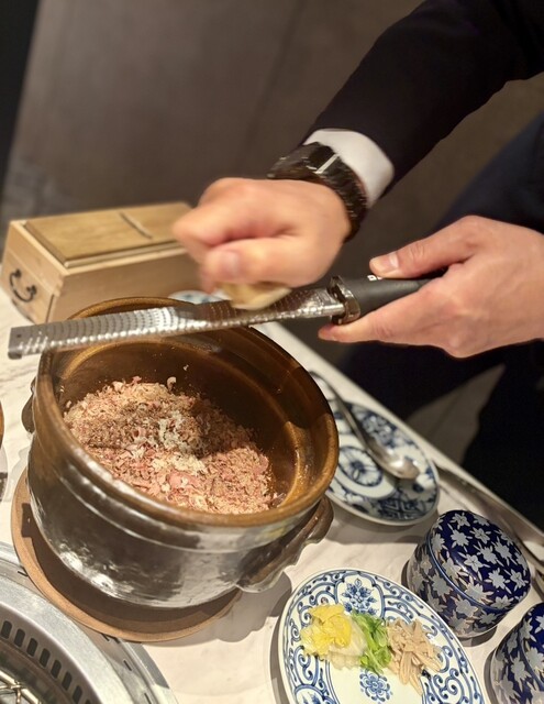 思い返してみると私は本当にいわゆる"焼肉"を食したのだろうか。口にしていたのは、いつもの煙とタレの世界ではなく、和を軸に丁寧に組み立てられた一つの上質な和こ一席を味わったような余韻が残りました。