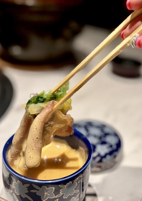 芳醇な和の出汁が効いた割り下を纏ったお肉を濃厚な卵に潜らせれば、まさに口福の極締めは「八代目儀兵衛」の特選米を鍋で。