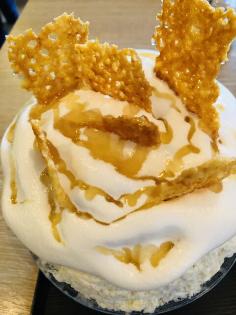 上と中にもはちみつ漬けのナッツがたくさん!ナッツ好きにはたまらん氷だ♡