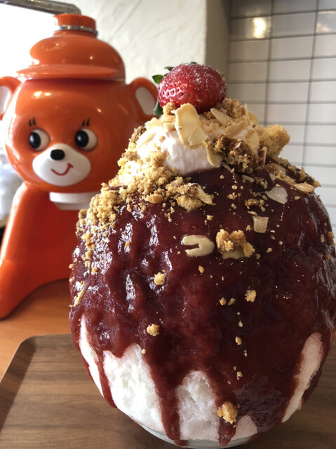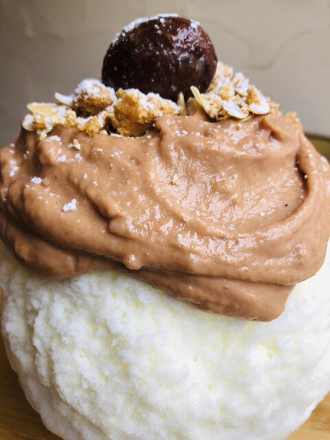 てっぺんに3粒のブルーベリー♡いつ食べるか悩むw